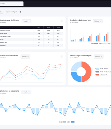 Vous disposez ainsi d’un tableau de bord sur-mesure pour prendre les bonnes décisions au bon moment, avec un accompagnement régulier de notre cabinet pour analyser vos résultats et anticiper.